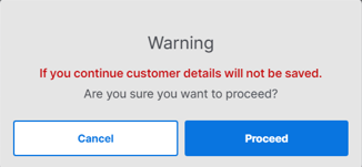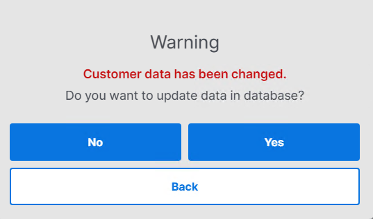 If an operator makes any changes to the customer details and selects next the user will be prompted to update the details in the customer database