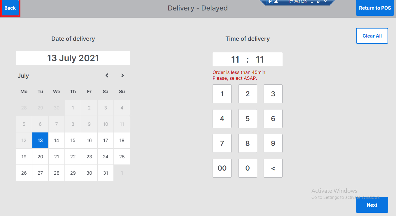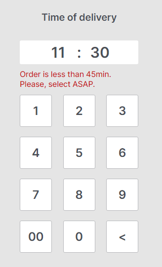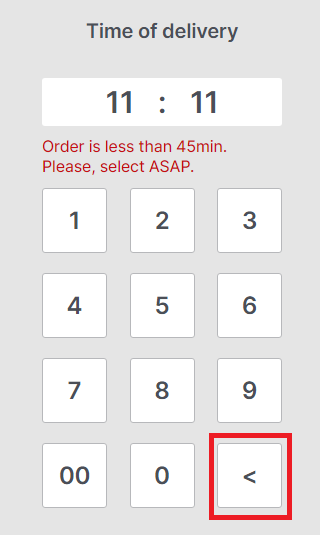 If the time of order is in the past, the following error will be displayed, tcorrect time, use the backspace button