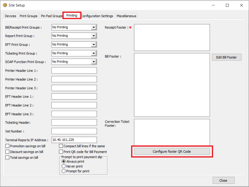 Note: QR code printing on receipts works only with supported printers