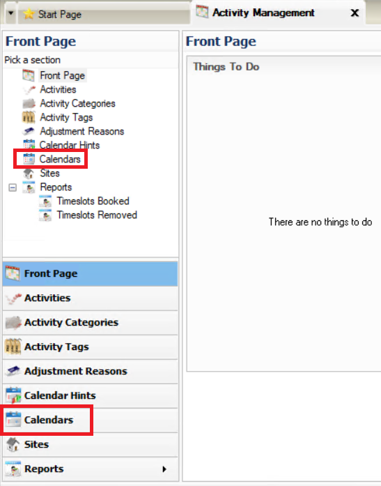 Go to | Activity Management | Calendars
