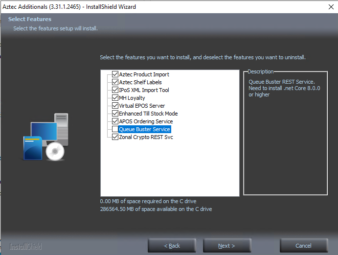 Queue Buster Service when selected in Aztec Additionals