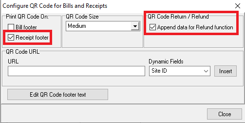 This will open a dialog box. Tick the box for "Append data for Return/Refund function". Please note that this will only work if Receipt footer option is also selected