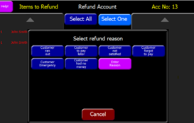 2. The POS user navigates to and selects the “Refund Account” button on the POS