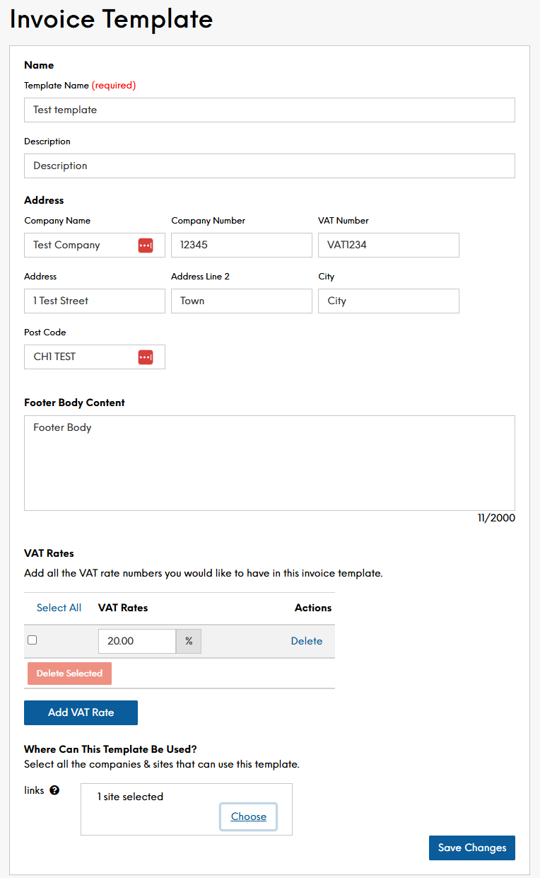 These fields are optional and have a 100 character limit. These fields are used to display companies’ address and details on the invoice -