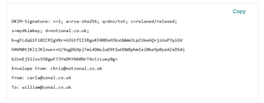 Back to our example, this time with a DKIM signature (this is also hidden from view in outlook)