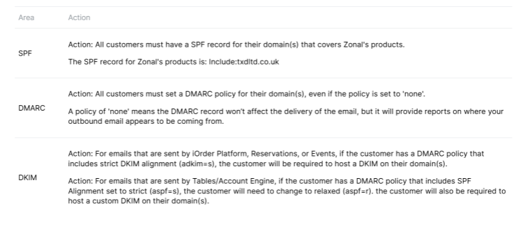 The following guide will outline each email authentication practice, and the steps needed. If you are unfamiliar with your current setup, please speak to your Zonal Account Manager, who will be able to let you know what configuration we can see.