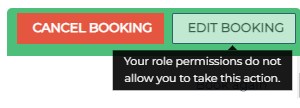 To ensure that Host users are not confused as to why some of the previously available functionality has been disabled, we implemented a message in Events Host app that appears when the user hovers their mouse cursor over the disabled function. For example, if the ability to edit a booking has been disabled, the Host user will see the below message: