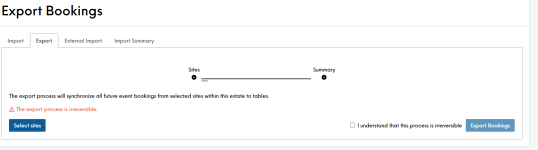 Once confirmed, the below message will display. No further messaging will present. To review if the process has exported all bookings, either review within the Tables Host applciation that bookings are showing, or refresh the browser, and re-run the steps of the export