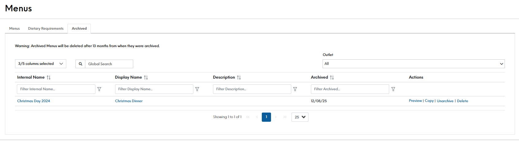 You can also unarchive from this page as well as check when this occasion / menu was archived