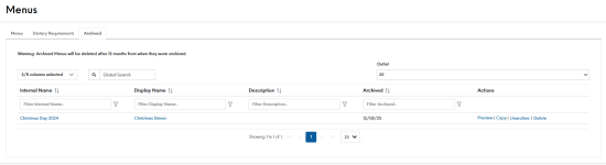 For the Admin user responsible for maintaining good housekeeping, this feature greatly enhances the managing of occasions and menus. As the Admin user will be presented with the correct 'Active' Occasions / Menus and be able to navigate to the Archived items. This will also have a impact on the time it takes for the items to load and make them easier to find.