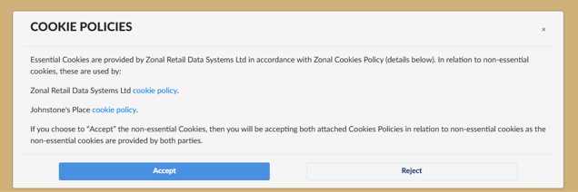 Once your account details are entered, the stock widget will display an option to view Cookie Policy links to both the Zonal Cookie Policy and your Cookie Policy