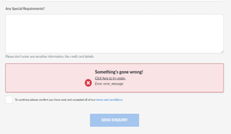 | Error when making Booking | WidgetErrors | Timestamp | |