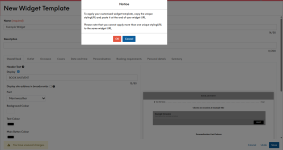 A pop-up will display stating: "Deleting this widget template will revert the styling on your widget to default. Do you wish to proceed?" Either select Delete or Cancel.Be aware that once a template is deleted, there is no way to recover them. If a template is required, you will need to create a new template and re-apply to your widget URL. -