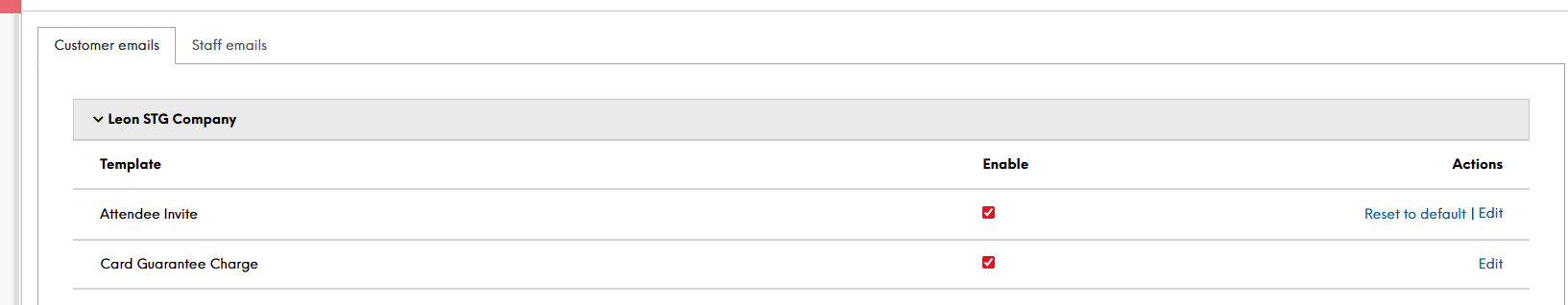 We have now added in the ability for the events admin to enable/disable emails per company. Similar to SMS, we now have a toggle to enable/disable emails if there are any email templates the admin wishes to not send.