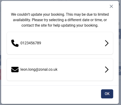 If a guest tries to make a change that would trigger a new booking rule, the portal will prevent the edit and display a pop-up instructing them to contact the site directly.