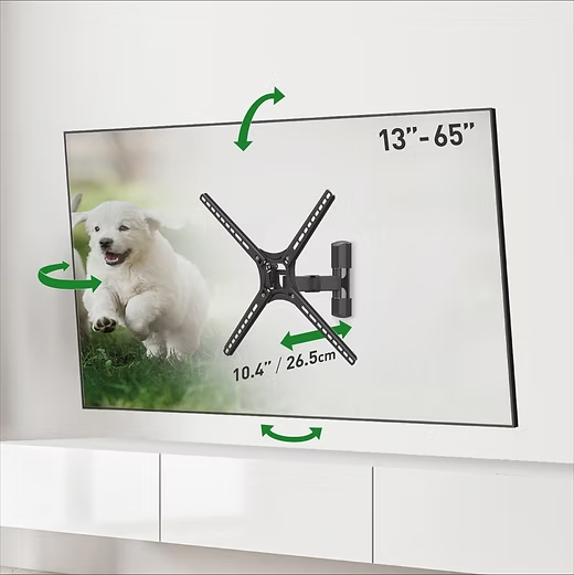 Full motion bracket (extension, swivel and tilt) with 75mm to 400mm VESA and 40 kg working load. Includes wall fixings.