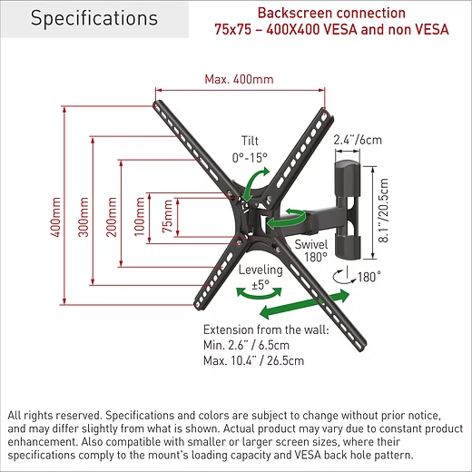 | VESA | 75mm x 75mm to 400mm x 400mm | |