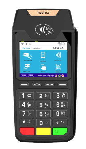 Fixed, wired pay at counter Pin Entry Device with contactless, chip and pin and swipe functionality.