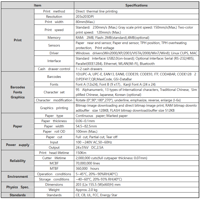 | Resolution | 203x203DPI | |
