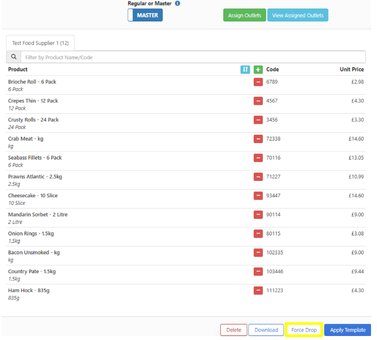 The below steps document how to create a Force Drop from a master template which would be utilised for a new menu launch or a new venues first order.