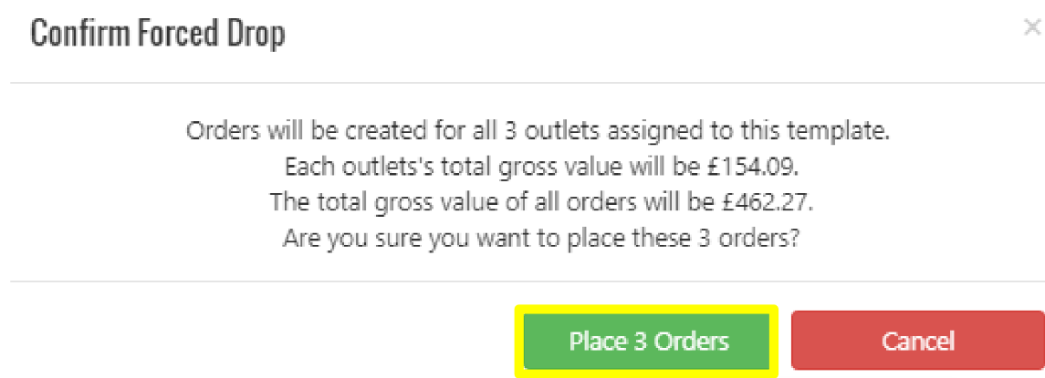 5. The below message will be displayed where in this example it reads Place 3 Orders