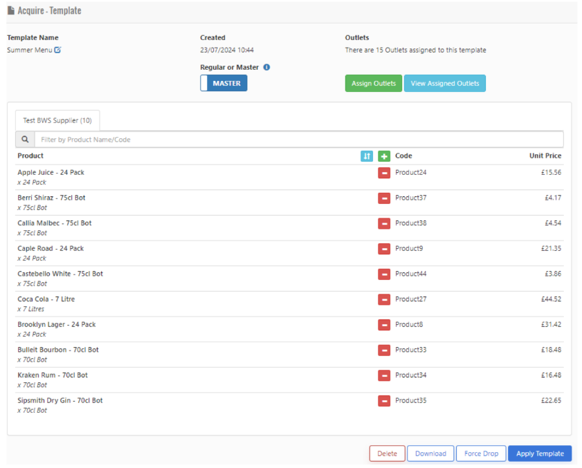 Master Templates are created at head office and could be utilised for new menus to ensure sites order the correct products to enable the new offerings.