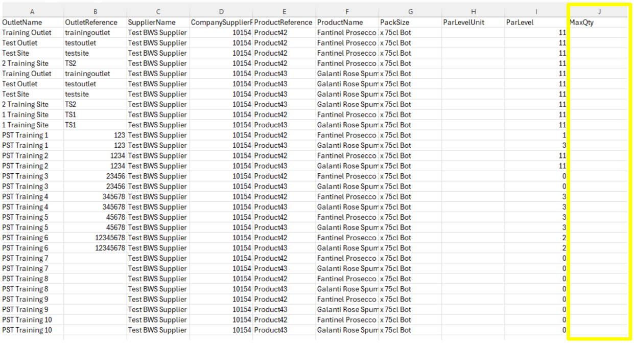 6. In the downloaded file, to set the Maximum Quantity, input the required figures in Column J then save