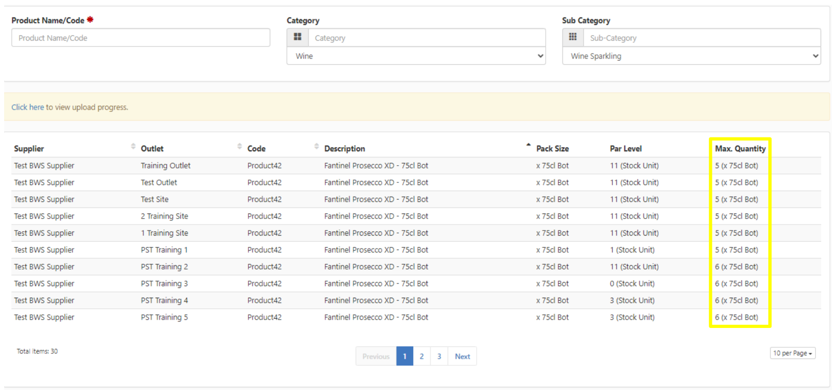 8. The Maximum Quantity has now been uploaded and set for a specific Category and Subcategory