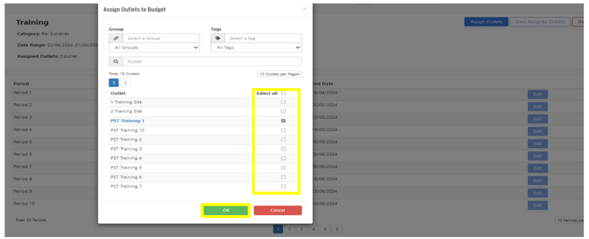 4. You will then need to Assign Outlets that this budget applies to and select OK.