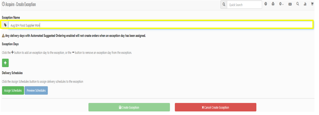 6. We would recommend that you include the Supplier’s Name and the Exception Day within the name