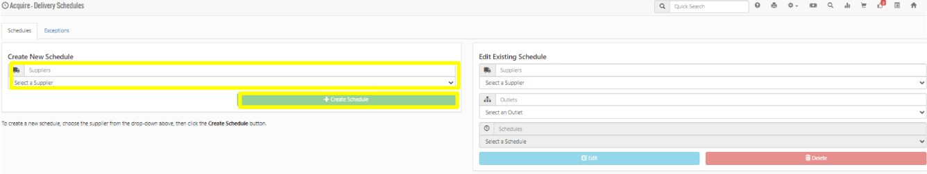 Select a Supplier then select Create Schedule