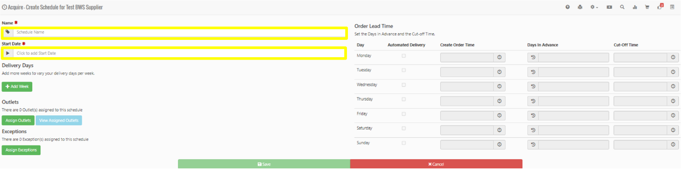 Insert the Supplier Name and Delivery days associated, then select a Start Date
