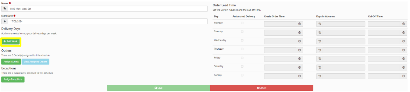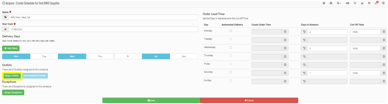 Your schedule will now look like the below image. Select Assign Outlets