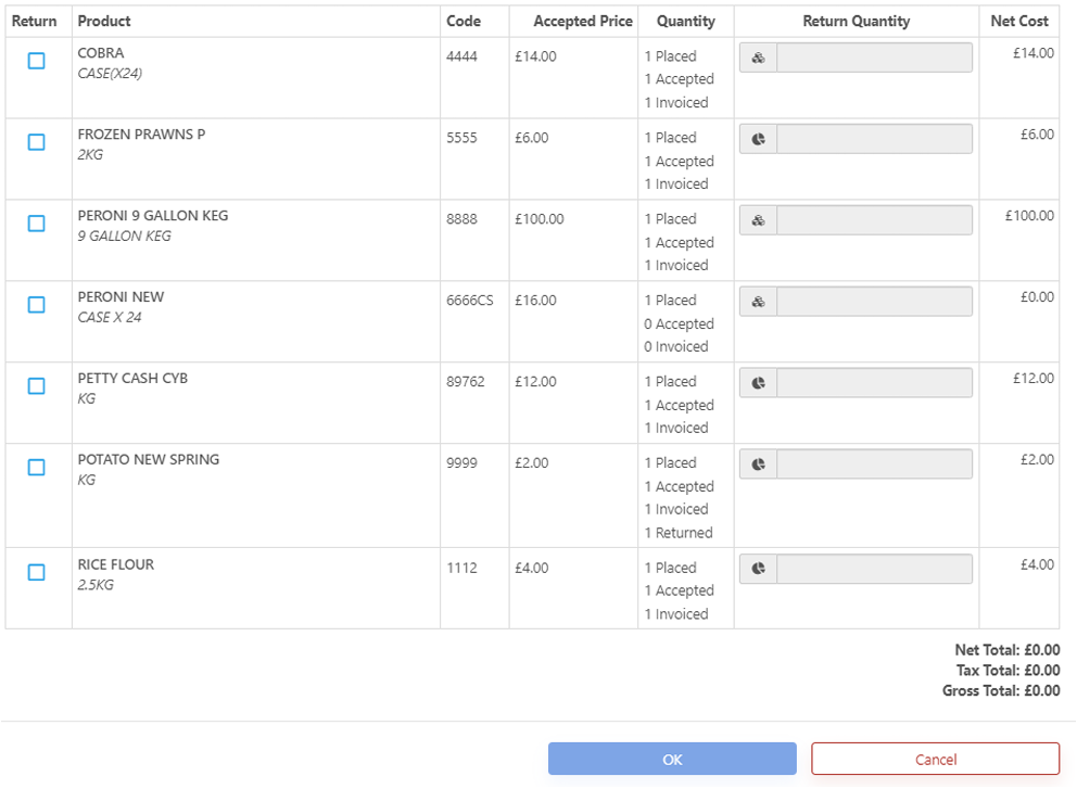 This functionality will update your stock, but will have no effect on the Invoice total, so please ensure any credit requests that need to be raised are also completed.