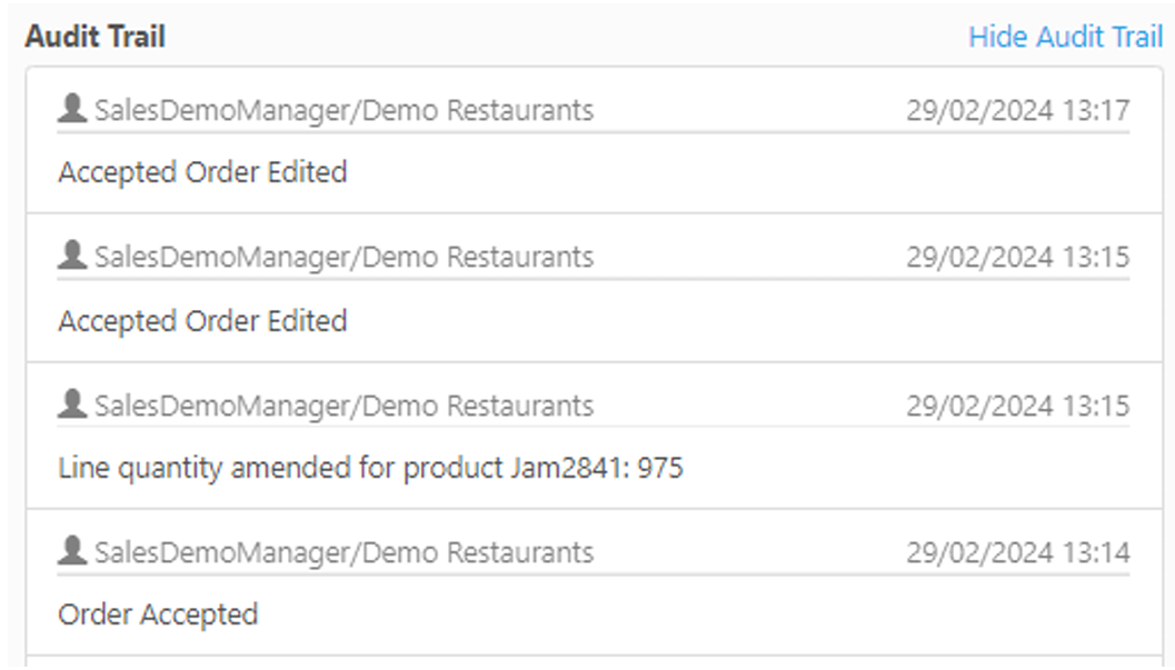 - Your Audit Trail within the order will reflect all changes.