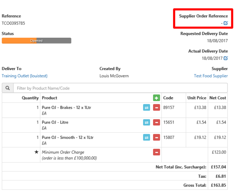 2. Click the blue Edit button under Supplier Order Reference.