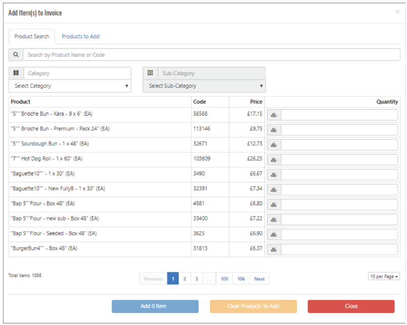 5. To add a new item to the invoice, select the icon and choose the required item from the Add Item to Invoice window