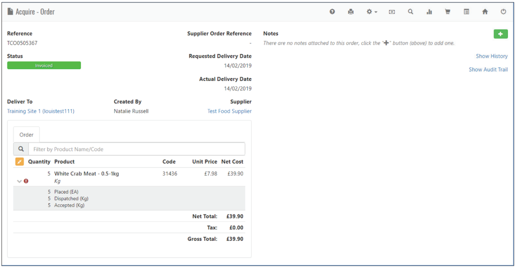 8. An invoice is issued and the order assumes a status of Invoiced.