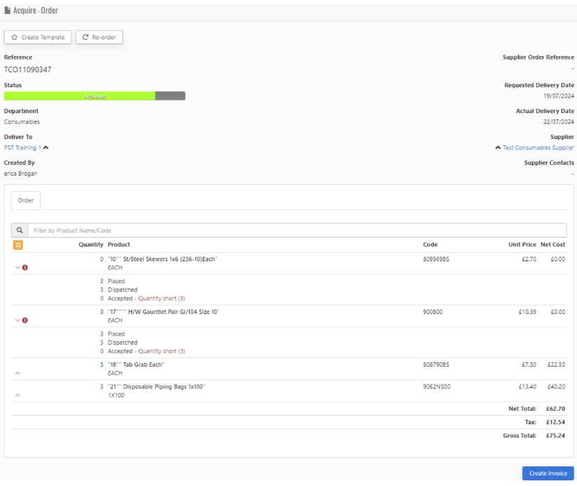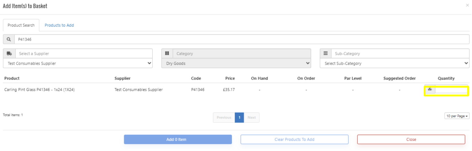 3. This now opens up your basket where you can input the Quantity required