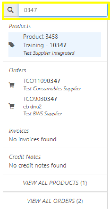 The below steps document how to search for Products or Invoices using the Quick Search feature