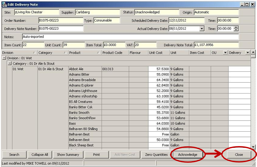 4. Unacknowledge the delivery note - this will allow you to make amendments