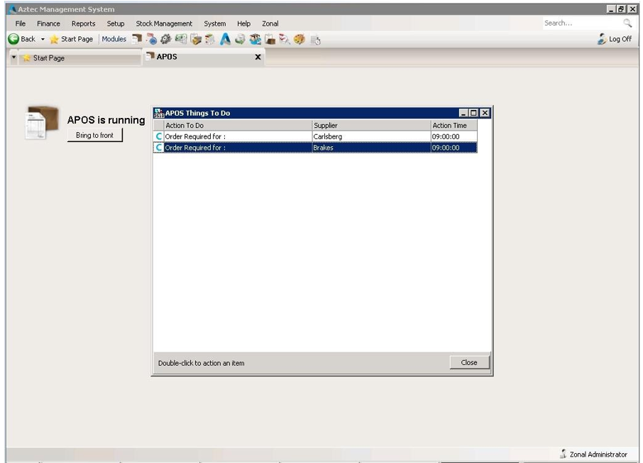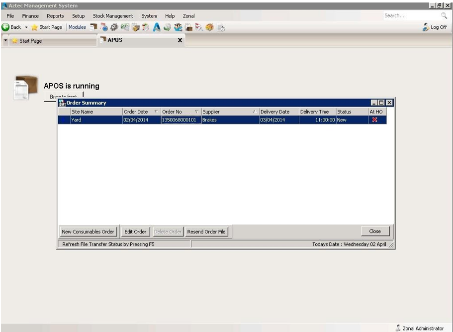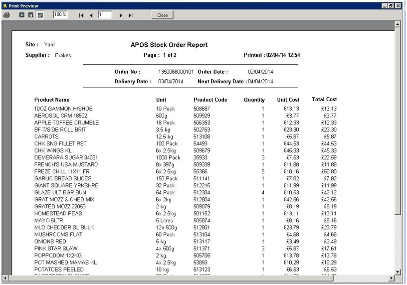 To print the order, select it from the Stock Order screen within APOS by double clicking it.