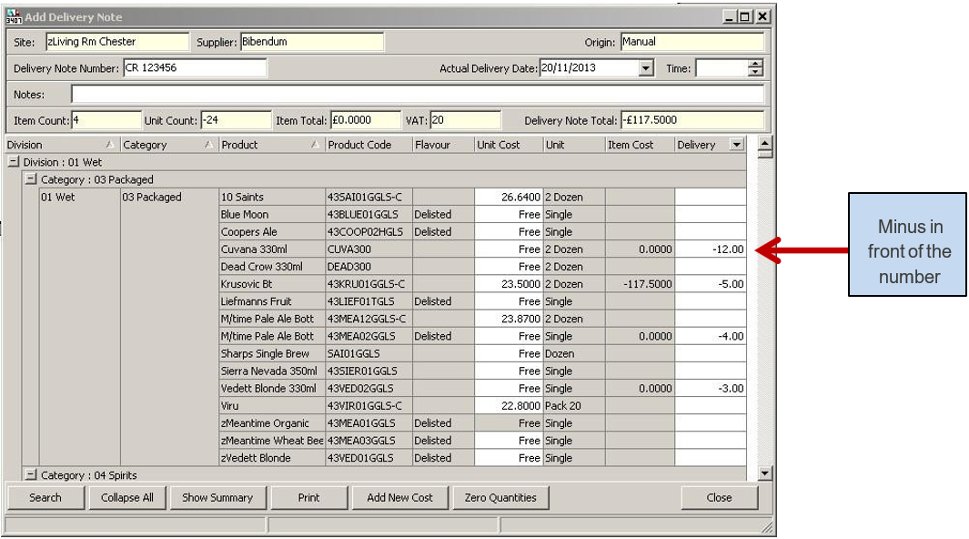 When stock is returned to a supplier, or a credit is due, a credit delivery needs to be entered into APOS to ensure your stock amounts are correct.