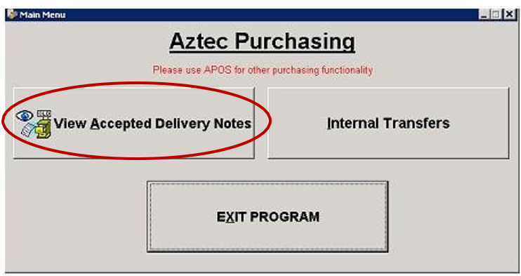 Delivery notes that are in accepted Stocks will still be available to view in the Purchasing module by selecting View Accepted Delivery Notes.