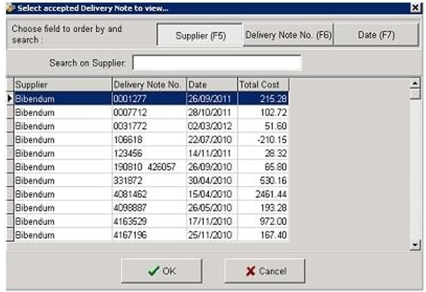 Search by Supplier, Delivery Note No. or Date to view