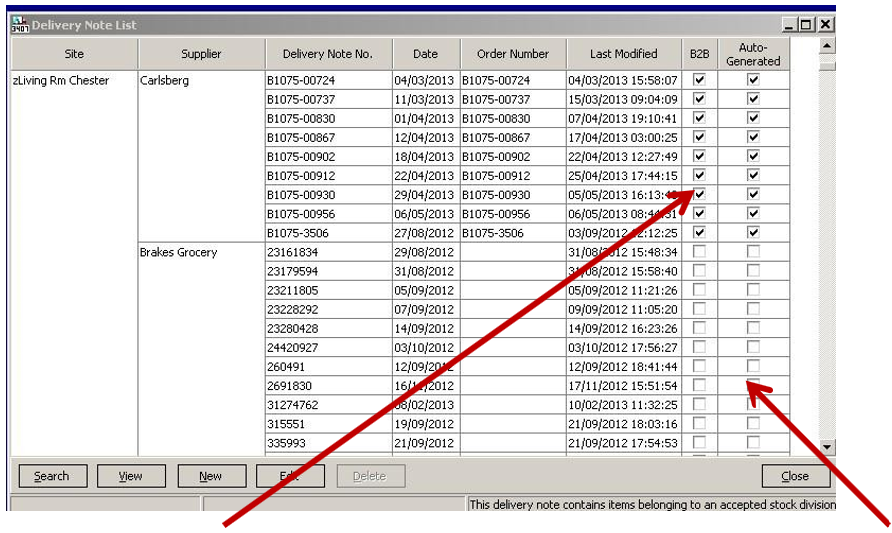 Any deliveries ticked in the B2B column have been automatically processed via Tradesimple. Any deliveries without this tick will be telesales deliveries you have entered.