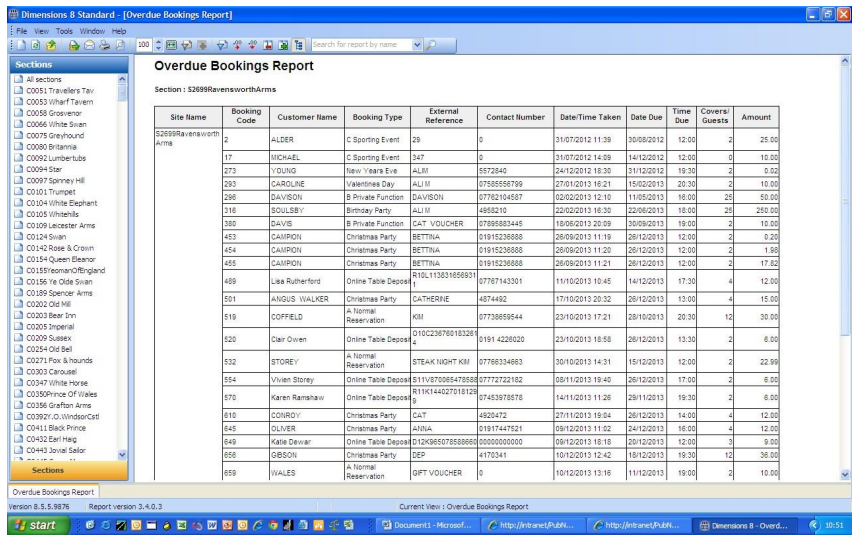 2. From Standard Reports select Overdue Bookings Report