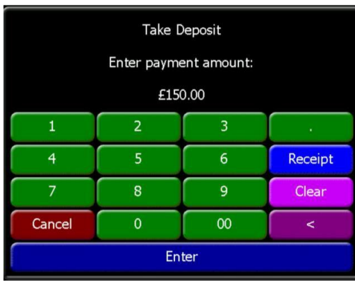 10. Enter the value of the deposit to be taken in pounds and pence and press the Enter button to confirm the amount.