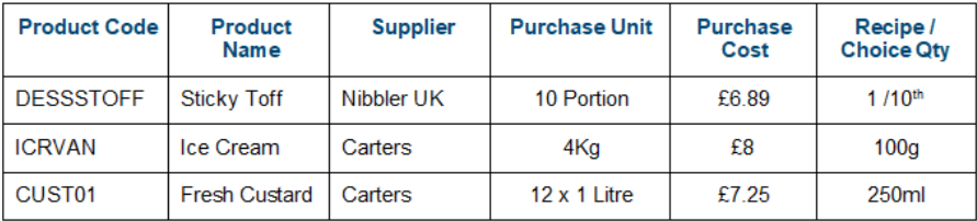 Click the Insert button and ensure you have a recipe line created – two lines should now be created, one of the ice cream and the other for the custard, ensuring the correct quantities are added.