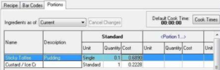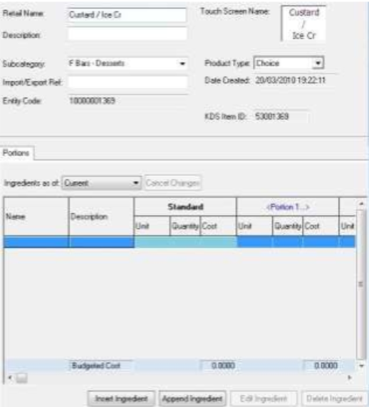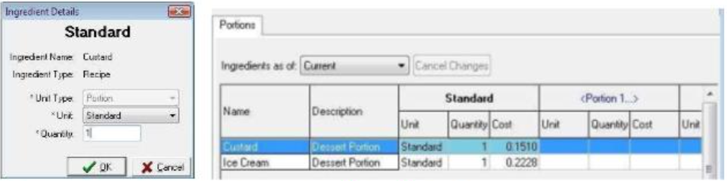 From the Add Portion Ingredient window choose the custard and the ice cream; if a description has been added to these products it can make it easier to ensure you select the right item.